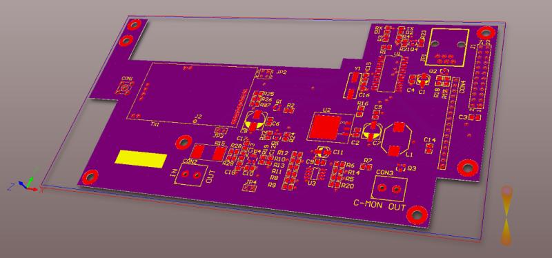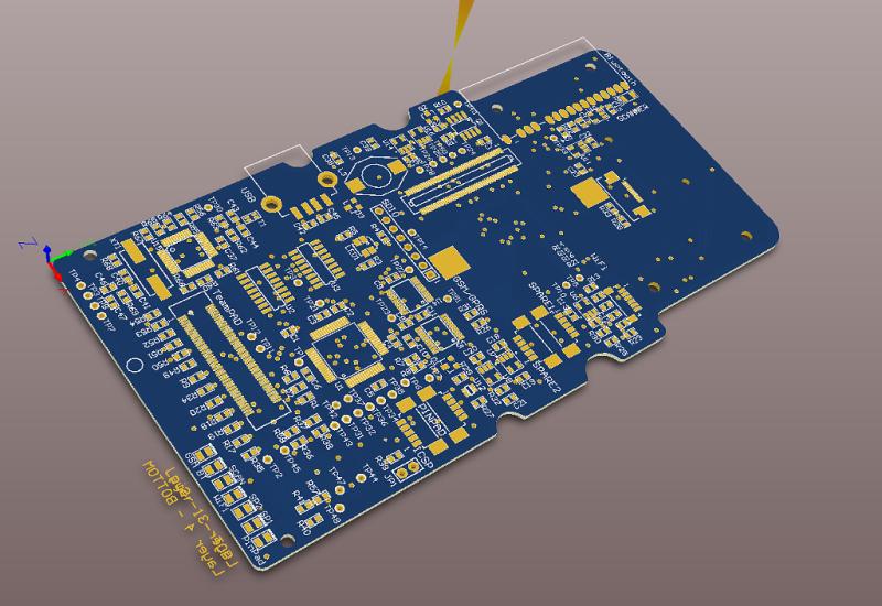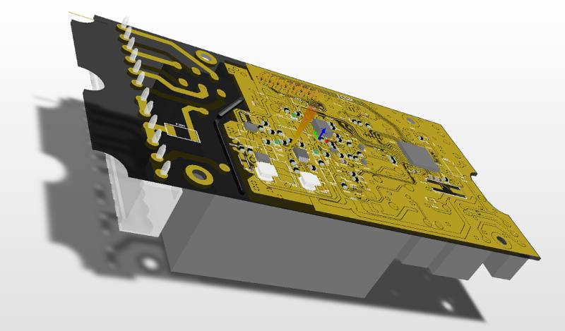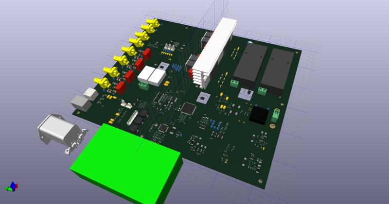 Illustration of early PCB layout (3D view in Altium Designer).