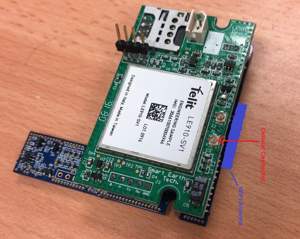 Texas Instruments TI2540 SoC and BT Stack based BLE (Bluetooth Low Energy) unit uses the 8051 Microcontroller Core, which at the time of this design ticked all the right boxes against requirements of this product. M2M or 3G (later 4G LTE) communications solution through thee integration of a Telit LTE Module