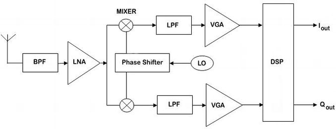 A direct conversion receiver (DCR) is also named as homodyne, synchrodyne, or zero-IF receiver. It was developed in 1932 by a team of British scientists. This receiver provides the most natural solution to detect information transmitted by a carrier in just a single conversion stage. The simplified block diagram of a typical direct conversion receiver is shown in Figure 1.