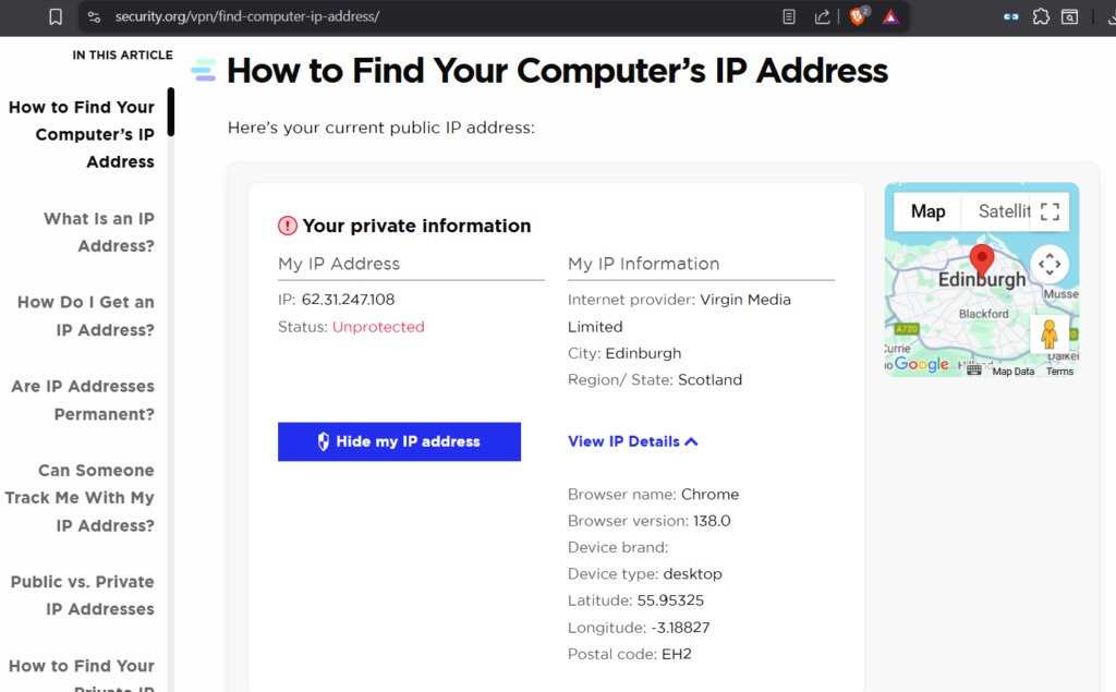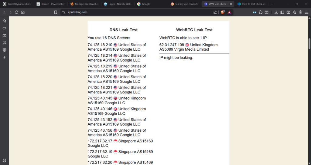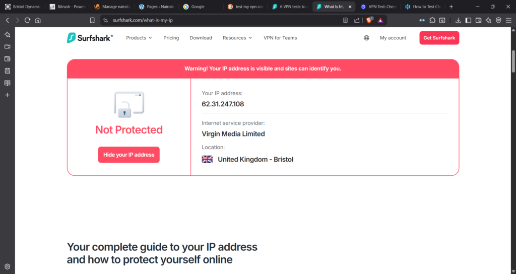 This is SurfShark’s conclusion (link to web-site)… Note, the IP address is the VPN Server IP and not my laptop!