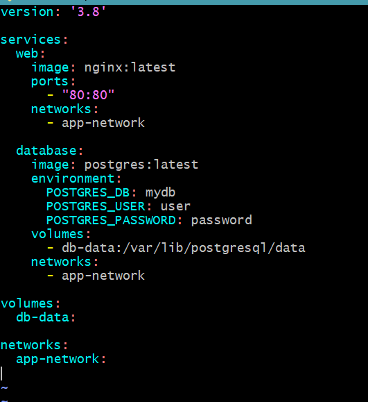 Version: The ‘3.8’ line of the version specifies the version of the Docker Compose file format that’s being used.