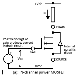 The power metal oxide semiconductor field effect transistor (MOSFET) is designed to be a fast-acting power switch. The MOSFET is a voltage controlled device which needs negligible power to drive it. They are available as N-channel and P-channel, however N-channel is preferred because of a lower on-state resistance.