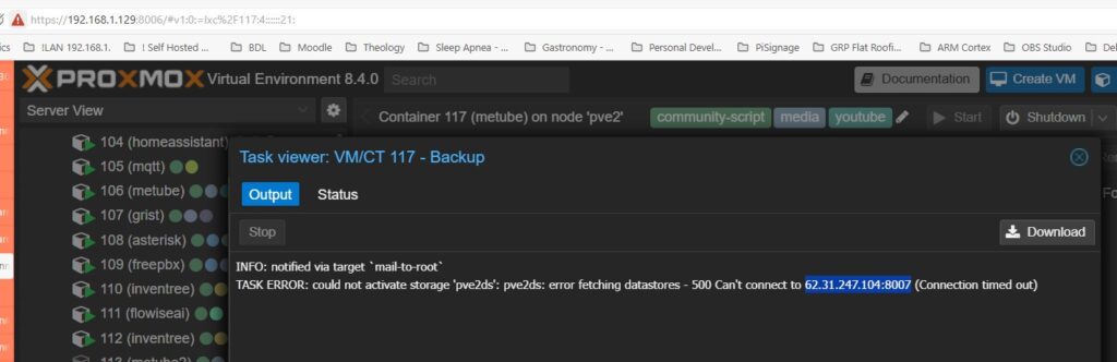 As can be seen, this is no straight forward process and requires considerable appreciation of Networking and configuring two distinct machines, PVE and PBS. The glue that allows the two to work in a perpetual manner includes IP addresses, credentials and FIngerprint, which is acquired indirectly through acquisition of TLS using LetsEncrypt. I appreciate, that probably doesn’t make sense and it is exactly how I felt about all this in the first instance, which is why I avoided it when I first contemplated using PBS for backups before losing my first HomeLab.