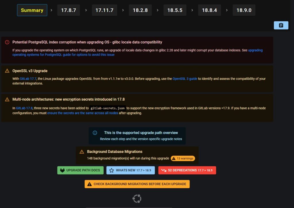 gitlab preinstall: It seems you are upgrading from 17.6 to 18.9.