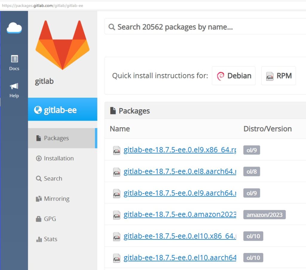 W.r.t. the above image, having just verified that it remains valid and unchanged, we use the same command (as we used during previous e.g. v16.x to v17.x update process, for Debian [and not RPM]) at this GitLab packages page: